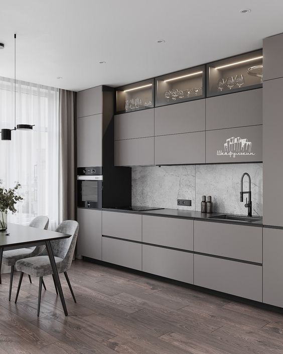 Straight kitchens feature a single-wall layout, making them perfect for compact spaces and studio-style homes. This design offers a clean and uncluttered look while maintaining all essential functionality.