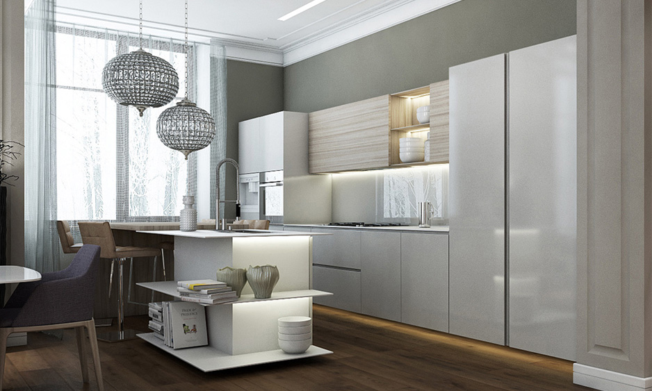 Our exquisite kitchen designs are offered with endless patterns in an island kitchen. An island kitchen would be an ideal choice to opt for vast space, as it facilitates us to keep things handy and well-organized.